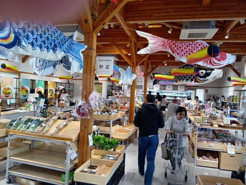 道の駅と言えば農産物直売所。季節の野菜が、実に種類豊富に並び、魅力ある売り場づくりを感じる。地元「護摩堂野菜」が色とりどり。地元田上の銘菓もディスプレイされており楽しさがある。ご当地色が強く出ている道の駅は楽しい。そういう地元演出が、唐突感にあふれて邪魔くさい道の駅もたまにあるが、こちらは実にセンスが良いと感じる。