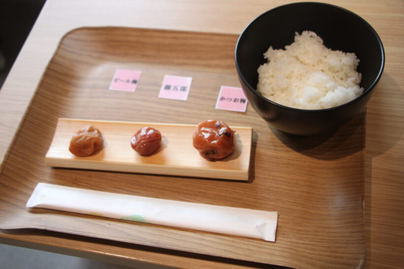 梅干し食べ比べ3種とご飯のセット(600円)