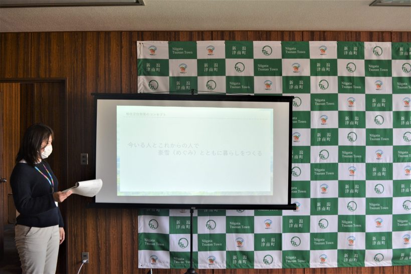 新潟県津南町の20代から30代職員など8人で構成する移住定住プロジェクトチームが28日、検討した移住定住施策案の発表会を津南町役場で開いた。