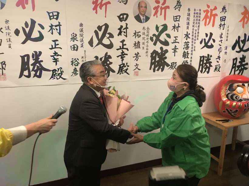 田村氏の当選の挨拶は以下のとおり。