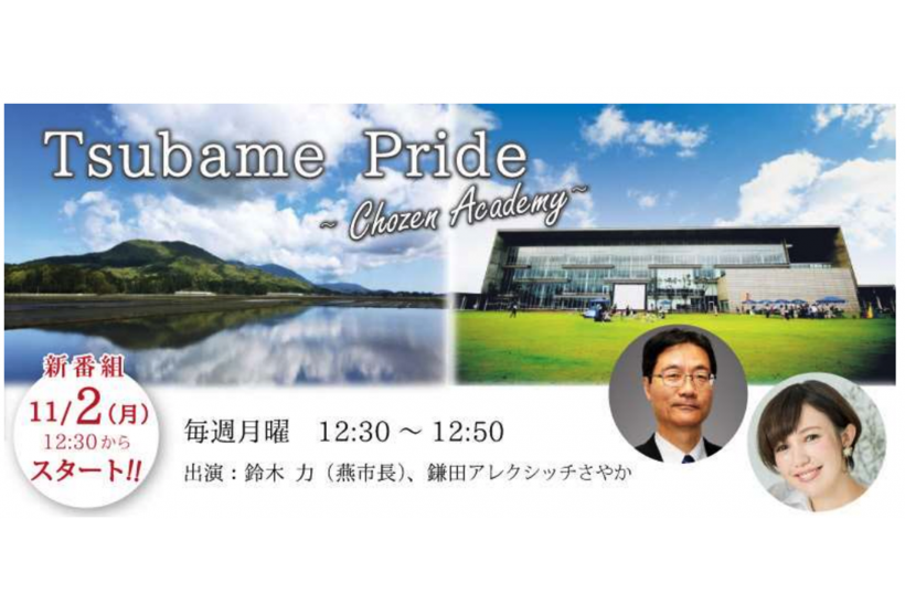 花角英世知事が登場するラジオ番組「CHIJI&CHIKAGEの新潟さんぽ」を聴く新潟県民は少なからずいるものと推察される。そんななか、今後は新潟県燕市の鈴木力市長が登場し、燕の魅力を伝える新番組「Tsubame Pride ~Chozen Academy~」を11月2日にスタートする。新潟県燕市が26日発表した。
