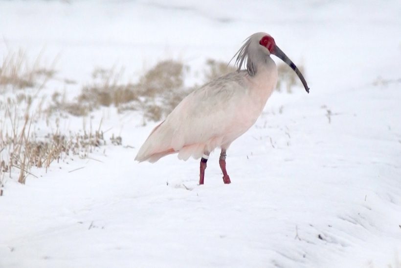 新潟県佐渡市でトキの繁殖羽への羽色変化を確認
