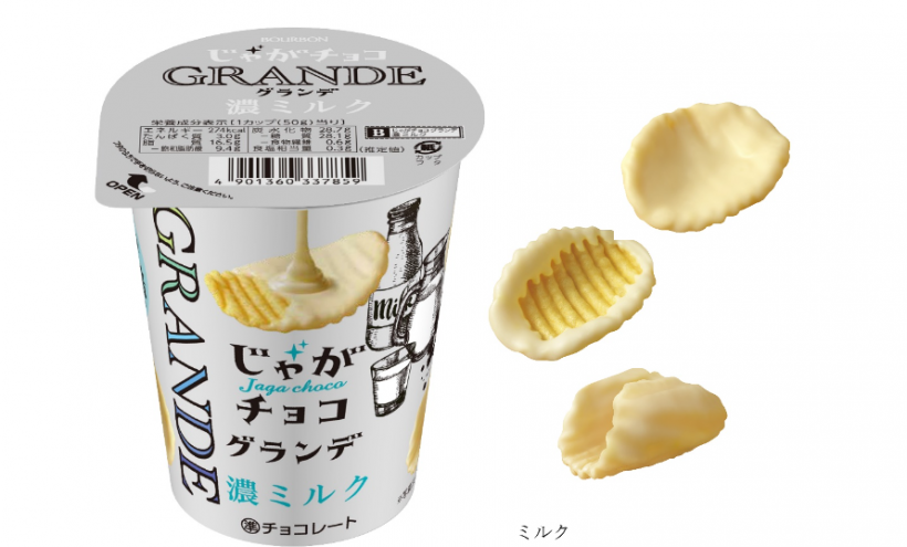 株式会社ブルボン(新潟県柏崎市)は18日、ホワイトチョコレートを同社比1.5倍に増量した「じゃがチョコグランデ濃ミルク」をリニューアル発売する。今年3月までの期間限定発売となる。