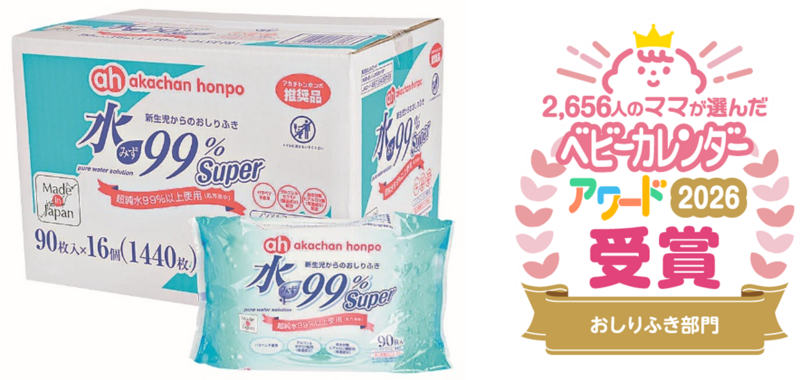 ベビーカレンダーアワード2026「水99%Super 新生児からのおしりふき スタンダードタイプ」が3年ぶり受賞!
